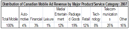 Standard SMS advertising programs currently generate 75% of the total Canadian Mobile advertising revenue, with the remainder divided across Premium SMS, Mobile Content, Mobile (Display) Advertising, Mobile Search and Mobile Applications. All forms of Mobile advertising are growing rapidly year-over-year, with the exception of Mobile Search, which is virtually non-existent at this time.